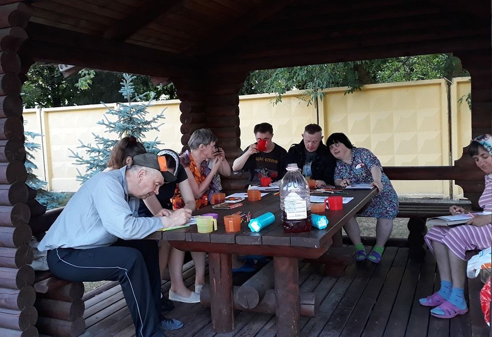 Сегодня была ужасная жара, и мы не знали, что мы будем делать на занятии, как мы будем, так жарко, так душно… А когда пришли, ребята сами подсказали нам беседку, в которой будет лучше, и мы очень хорошо порисовали и пообщались, и не помешала нам жара, а, можно сказать, даже поспособствовала тёплому общению ????