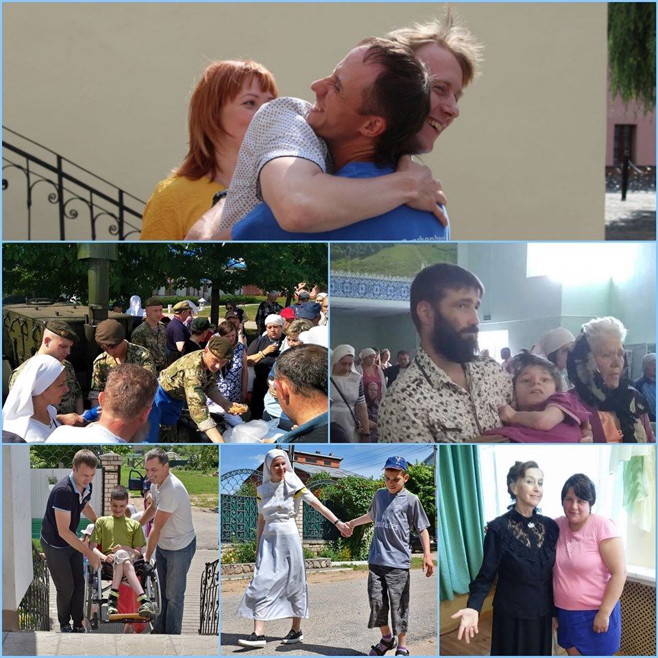 В воскресный день после ранней литургии, когда погода хорошая, вместе с ребятами молодежной группы мы навещаем ребят интерната. В этот раз на улице мы были с мальчиками, гуляли в саду, помогали мать Марфе выгуливать коз. В летнее время мы выходим из монастыря около 9:30. Молодежная группа – это 10-11 класс, но этим, конечно, возраст участников...